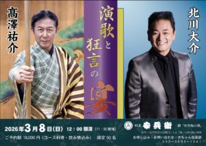 演歌と狂言の宴 開催日:2026年3月8日(日)開場:11時00分開演:12時00分会場:割烹 安兵衛 二階「松竹梅の間」住所:埼玉県坂戸市日の出町2−10料金:18,000円(コース料理・飲み物込み)※限定50名様 / […]
