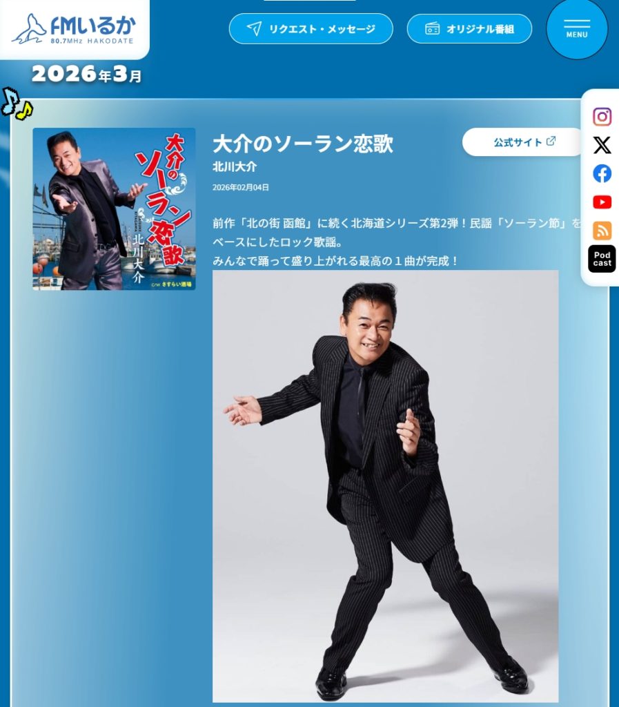 函館のコミュティーラジオ「FMいるか」にて3月のパワープッシュに「大介のソーラン恋歌」が抜擢!!